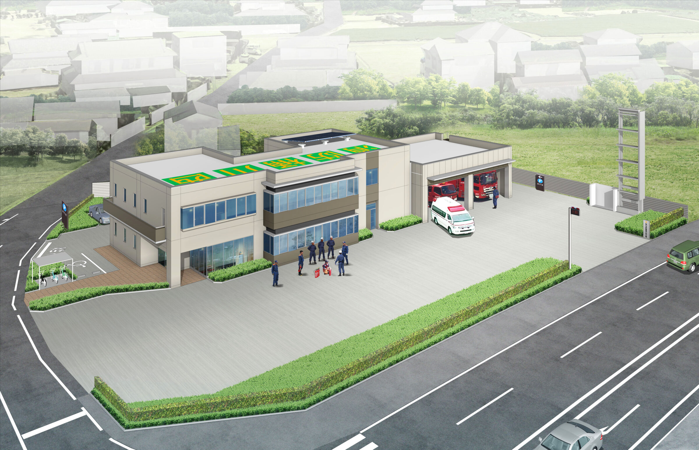 特 徴 | 新たな庁舎は、救急消毒室、救急資機材庫、多目的室、トレーニング室や女性職員が使用する居室など、これまでの桶川西分署にはない機能を追加します。また、庁舎前に長さ53メートル程度のスペースを設けることで、多種多様な訓練にも対応することができます。 |