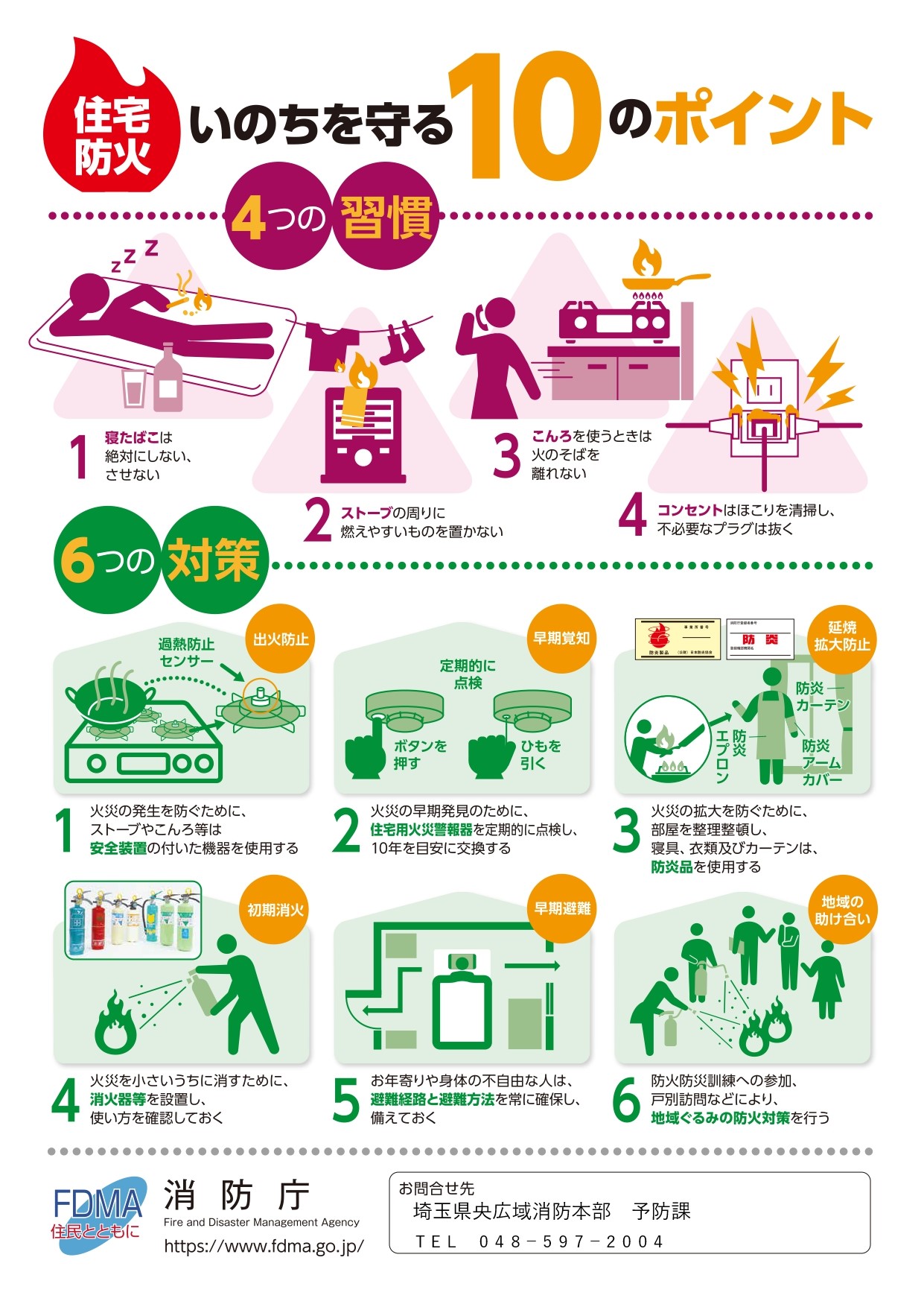 「住宅防火 いのちを守る 10のポイント」を実践しましょう。