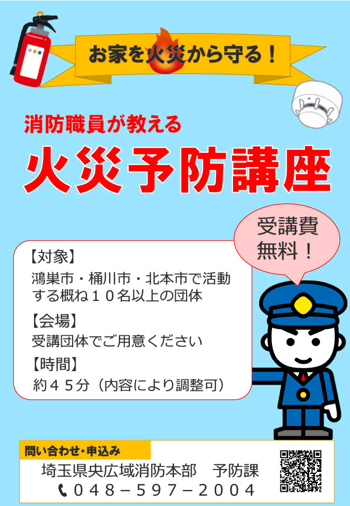 消防職員が集会などに赴き、講話を通じて住宅防火の意識を高め、住宅火災発生件数の低減を図る取り組みです。